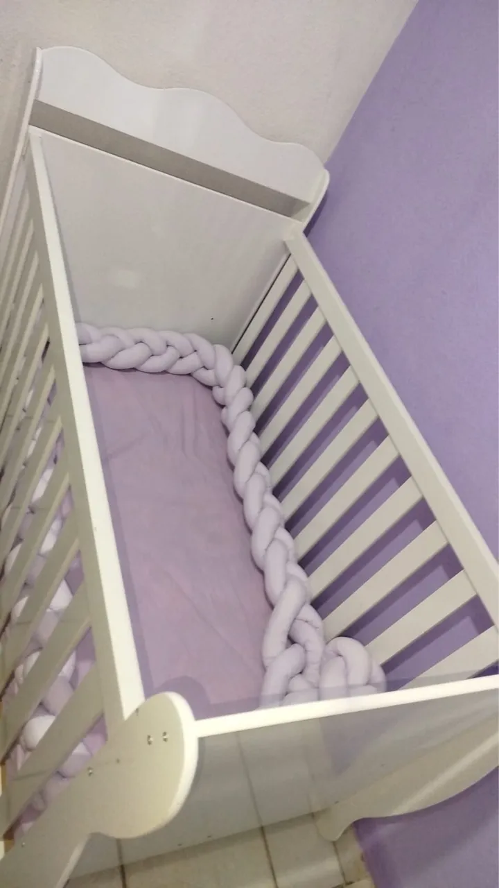 Lindo berço branco, ideal para o quarto do seu bebê! Design moderno e seguro/ também vendo dossel, trança de berço e banheira.