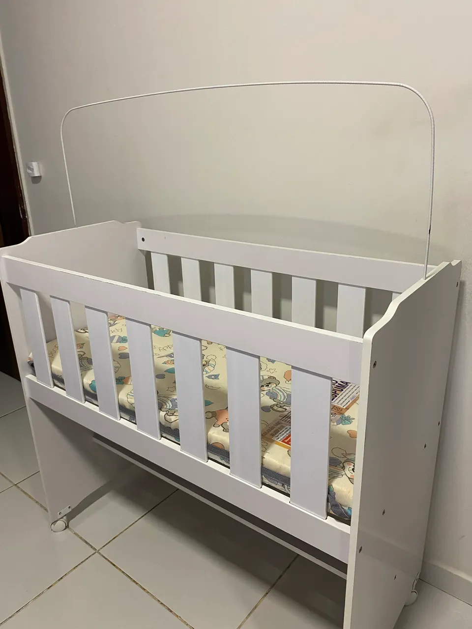 Lindo mini berço branco, perfeito para o conforto do seu bebê. Design moderno e seguro para noites tranquilas.