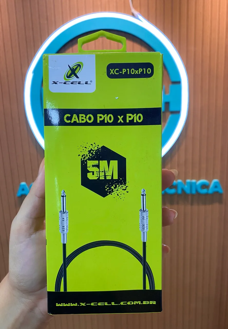 Cabo de áudio P10xP10 com 5 metros de comprimento, ideal para diversas aplicações de áudio.