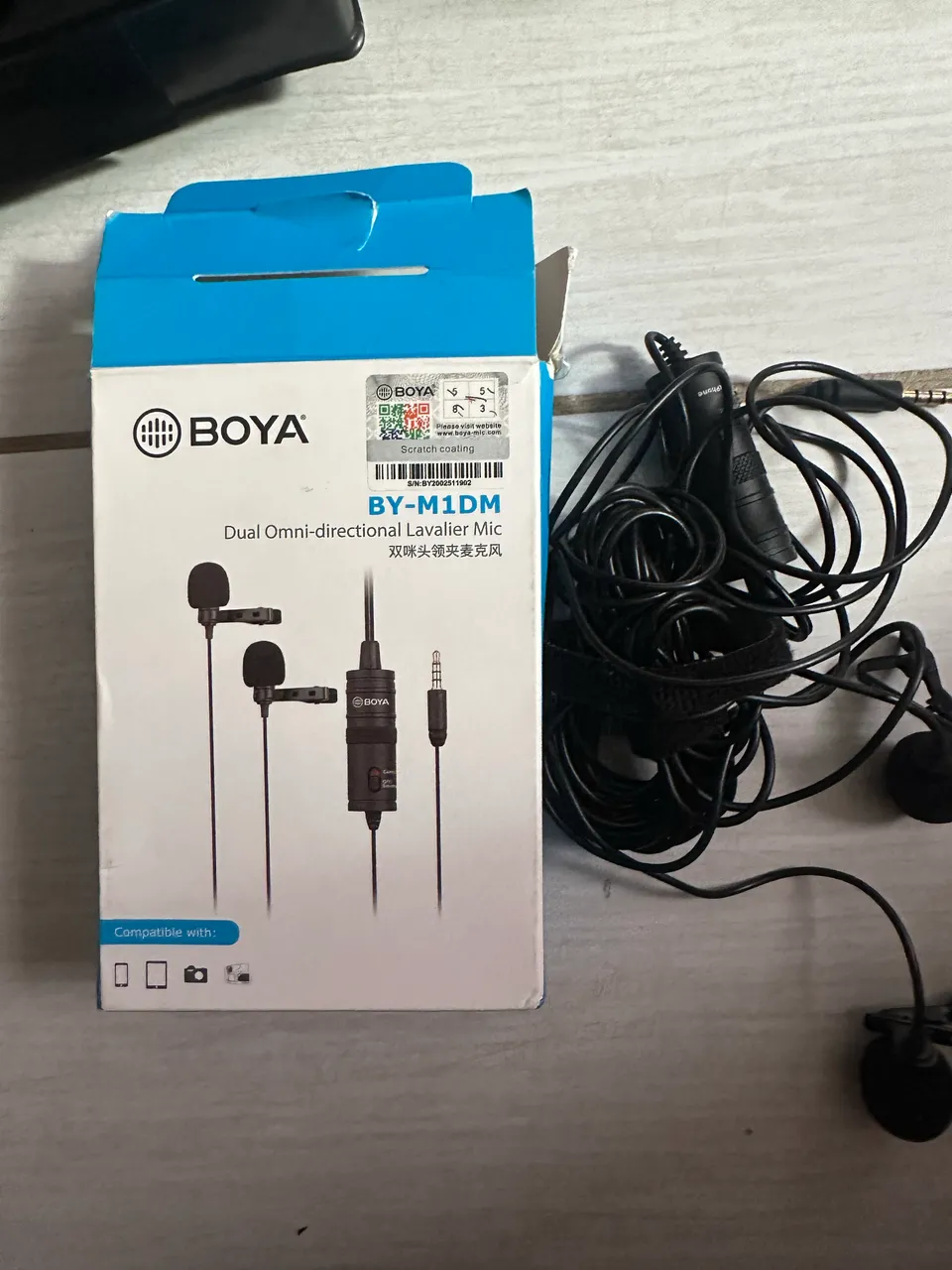 Microfone de lapela BOYA BY-M1DM, ideal para gravações de alta qualidade. Com design dual omnidirecional, garante áudio nítido e claro. Perfeito para entrevistas, vídeos e mais!