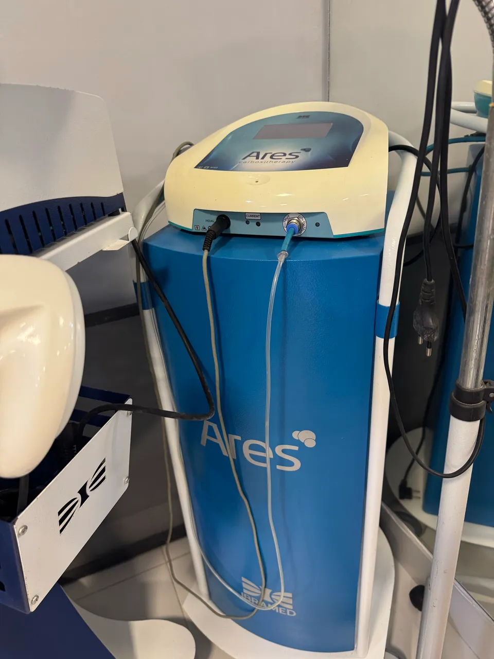Aparelho Ares, ideal para tratamentos estéticos e terapêuticos. Tecnologia avançada para resultados eficazes e seguros. Design moderno e fácil de usar. Perfeito para clínicas e consultórios.