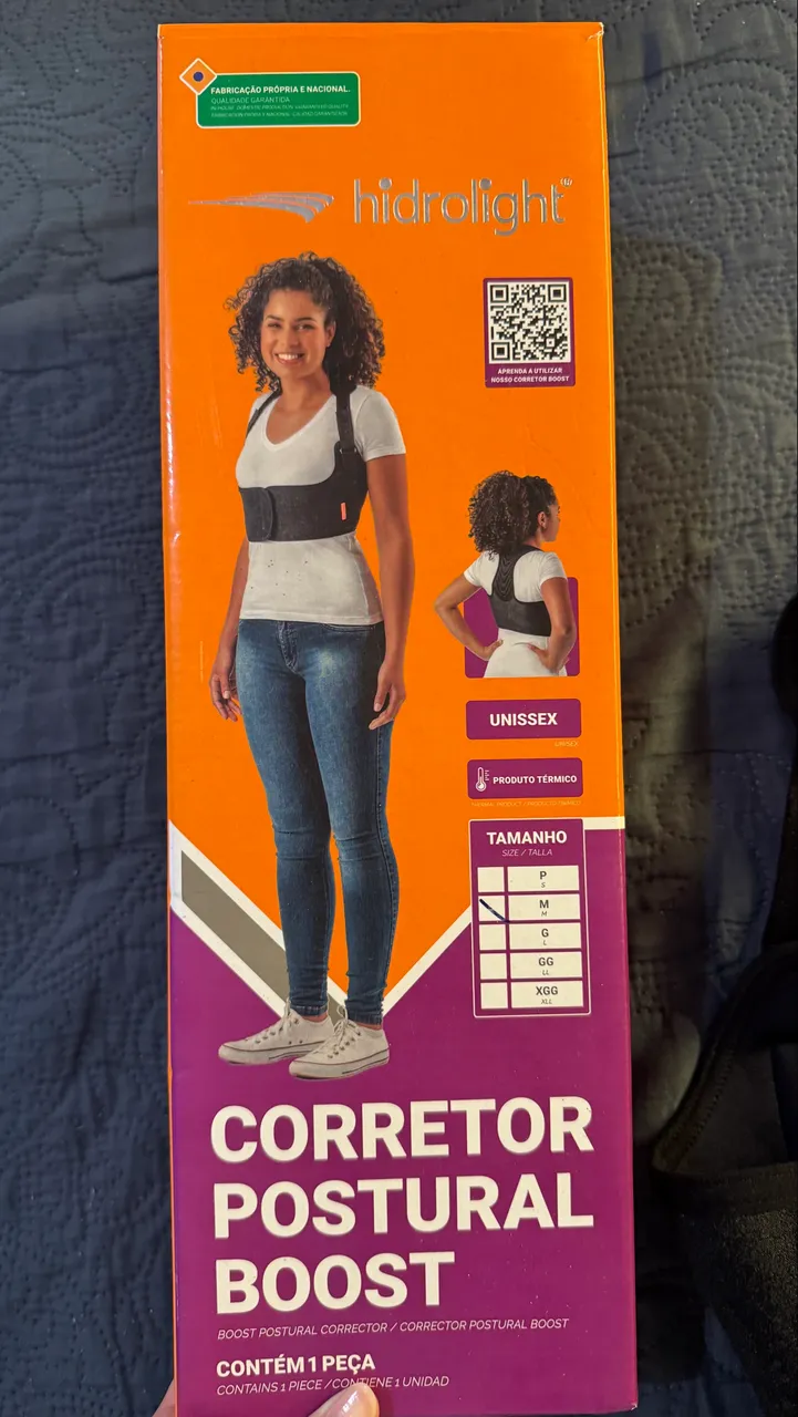 Corretor postural Hidrolight, ideal para corrigir a postura e aliviar dores nas costas. Unissex, tamanho M. Usado poucas vezes, praticamente novo!