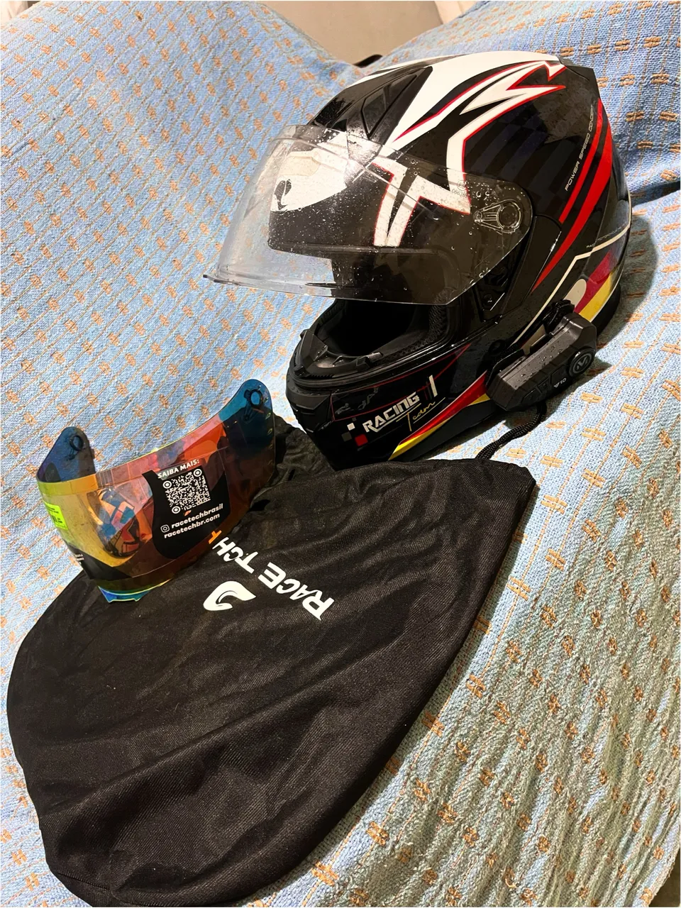 Capacete - 58 Capacete - 56 Novos 2 mês apenas de uso Motivo da venda: ganhei outros . Viseira reserva - fone Bluetooth com mic Bag do capacete