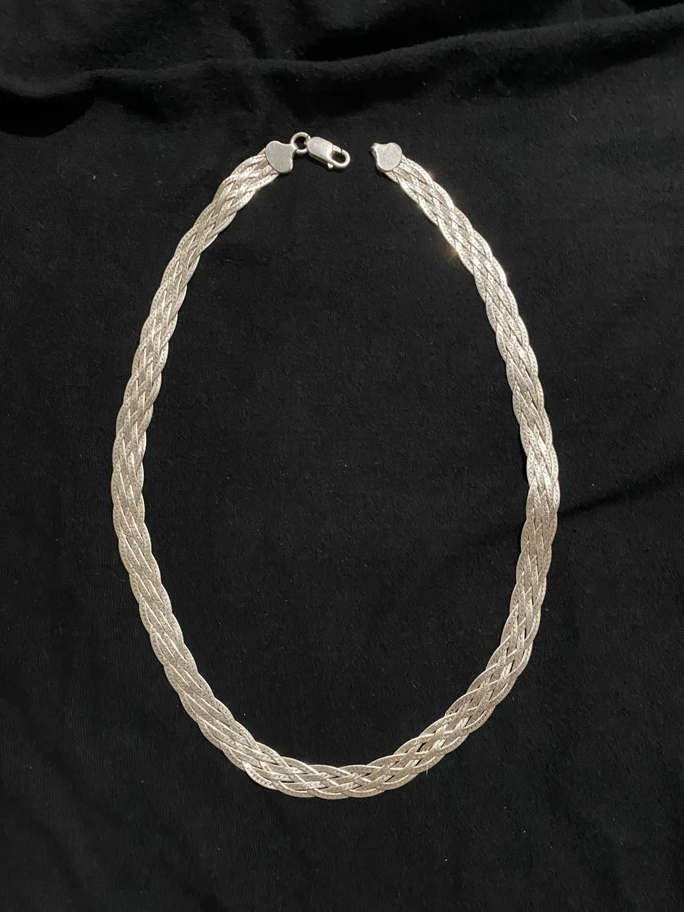 Lindo colar de prata com design de 6 fios trançados, perfeito para adicionar um toque de elegância e sofisticação ao seu visual.