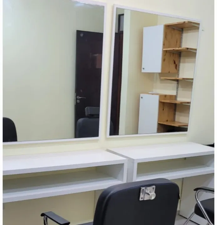 Espelhos com moldura MDF branca, medindo aproximadamente 1 X 1 m, em bom estado de conservação.