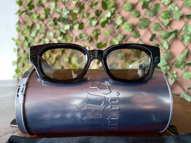 armação preta brilho e lentes translucidas