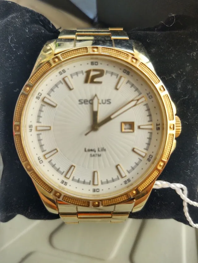 Vendo Relógio Seculus Dourado masculino na embalagem, produto novo.