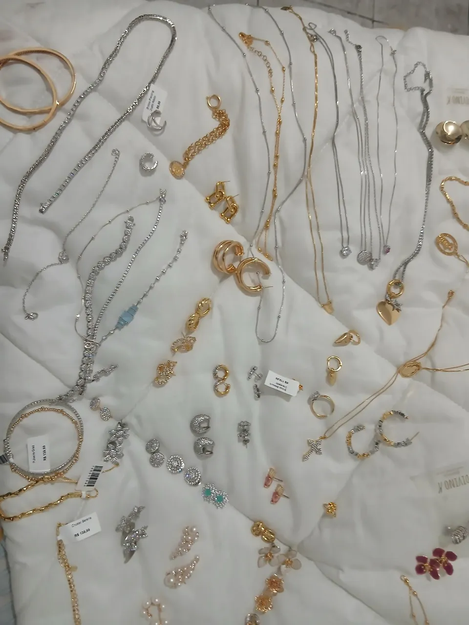 As semijoias da Divino K são de uma qualidade e beleza sem igual. São vários colares e brincos novos, muitos ainda com a etiqueta. Comprei as peças n loja física que fica em Recife ( Pernambuco) e também pelo site. Podem olhar pelo site se caso as fotos não estiverem boas.