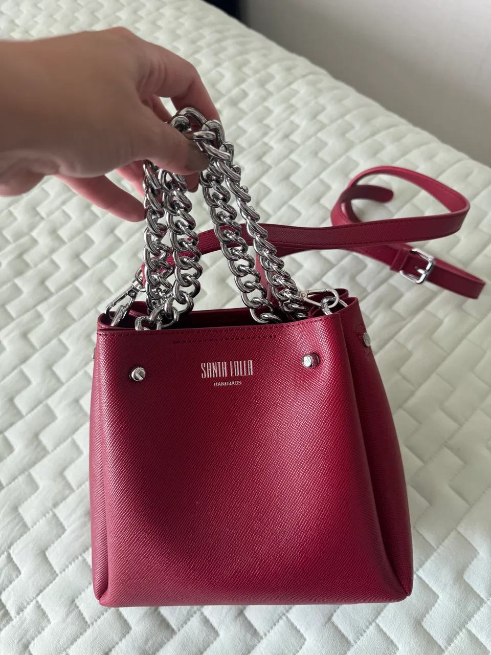 Linda bolsa Santa Lolla com design elegante e moderno. Perfeita para diversas ocasiões, com alça de corrente que adiciona um toque de sofisticação. Uma peça que combina estilo e praticidade.