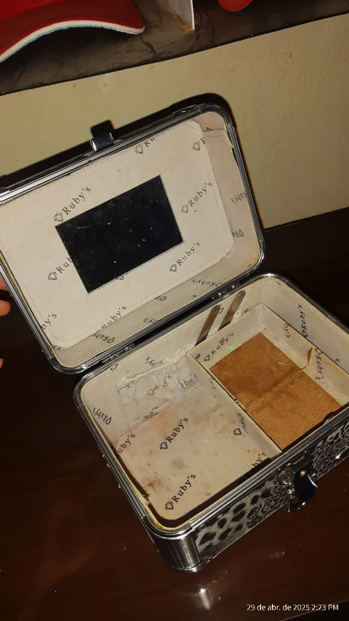 Maleta de maquiagem Ruby's, ideal para organizar seus produtos de beleza. Com espelho e vários compartimentos, perfeita para carregar tudo o que você precisa.