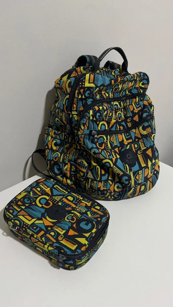 Apresentamos a mochila Kipling e estojo, perfeita para quem busca estilo e praticidade. Com design vibrante e compartimentos espaçosos, esta mochila é ideal para o dia a dia. Leve seus pertences com organização e charme! Uma combinação de cores e estampas que irá te encantar. perfeita esta muito conversada.