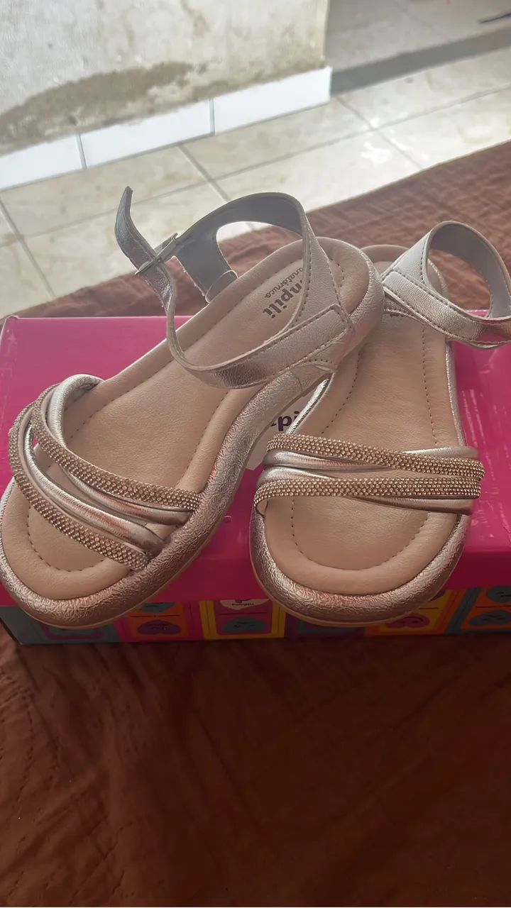 Sandália infantil com design moderno e detalhes brilhantes. Perfeita para as pequenas fashionistas que adoram brilhar em qualquer ocasião!