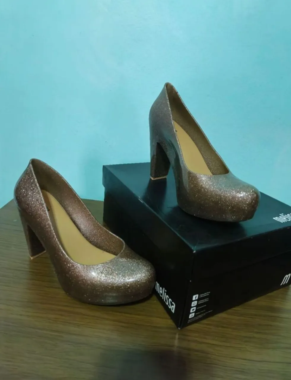 Scarpin Melissa tamanho 37 com glitter, perfeito para um toque de glamour em qualquer ocasião. Salto confortável e design moderno.