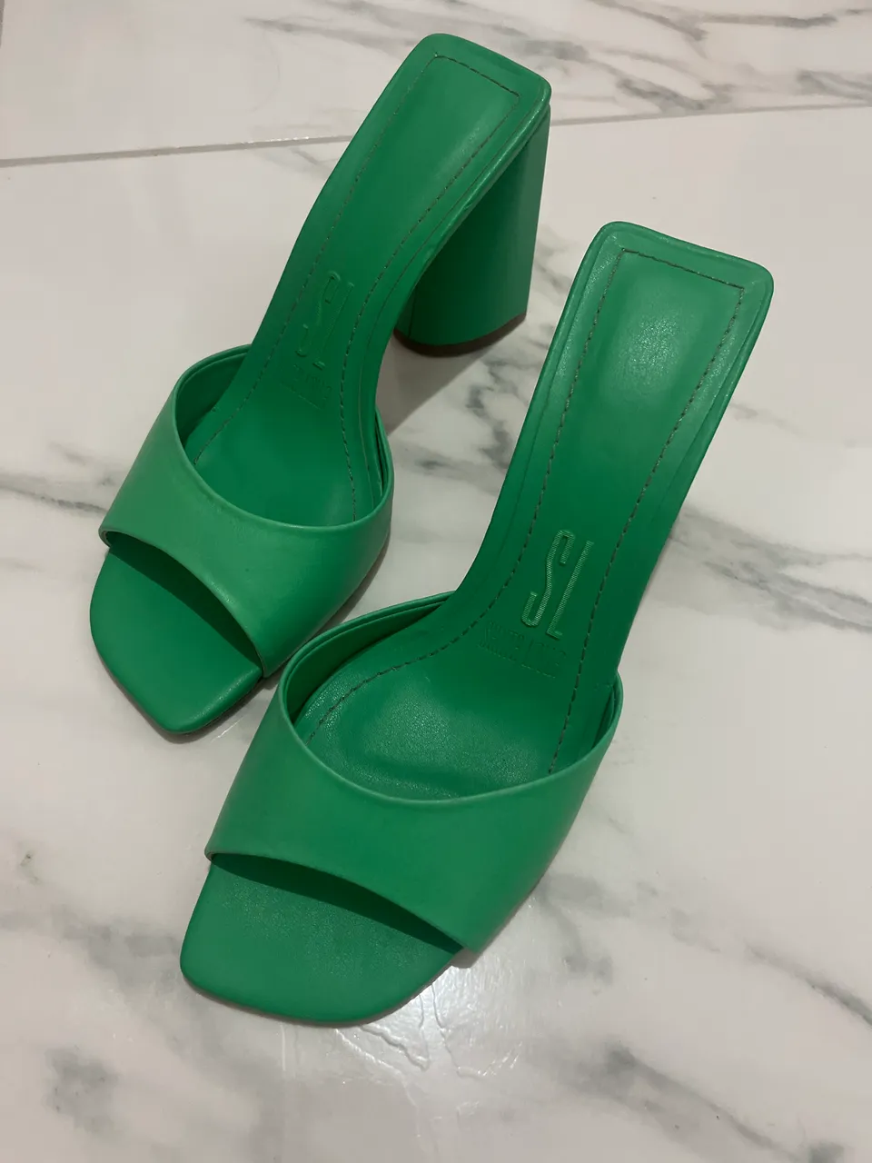 Sandália Santa Lolla verde, perfeita para um visual moderno e estiloso. Salto bloco que proporciona conforto e elegância.