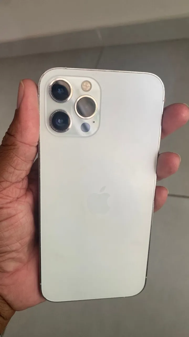 IPhone 12 Pro Max encontra-se com um probleminha na câmera traseira onde a mesma precisa ser trocada e um pequeno trinco no vidro da tela onde a troca será feita apenas do vidro.