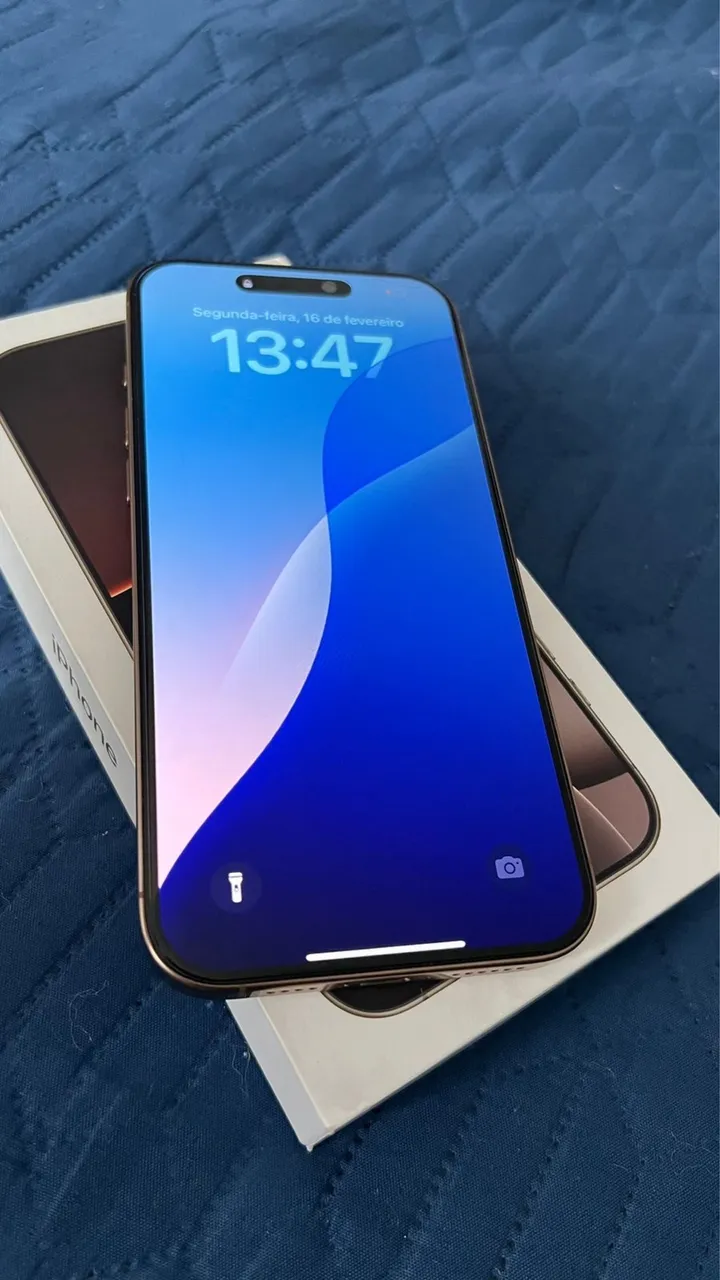 Iphone 16 Pro Max 256gb Desert Titanium Saúde da bateria 98% *Detalhe no cantinho da tela