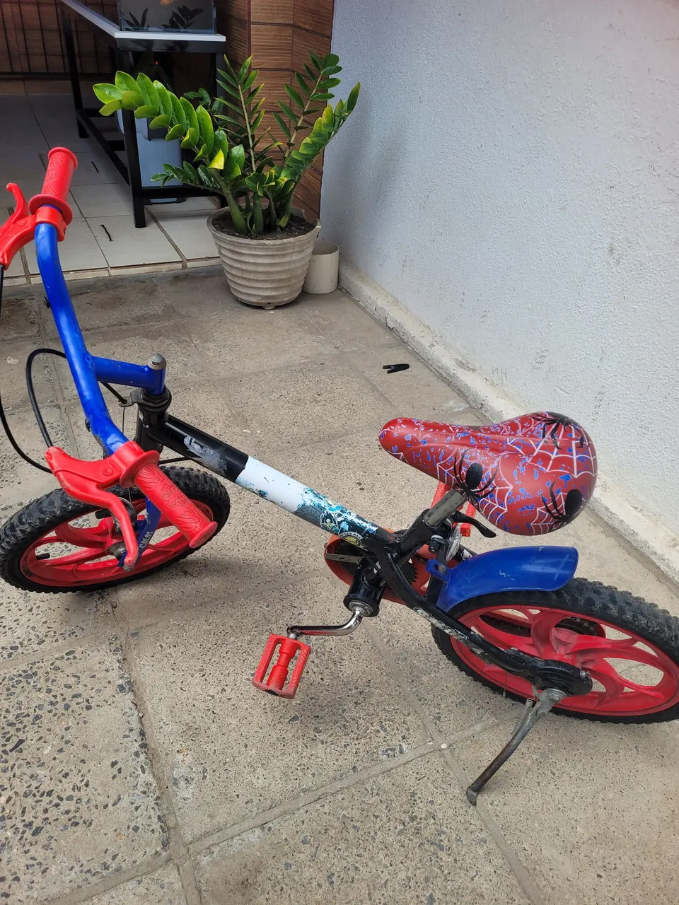 Bicicleta infantil com design do Homem-Aranha, perfeita para os pequenos aventureiros. Confortável e estilosa, ideal para passeios e muita diversão.