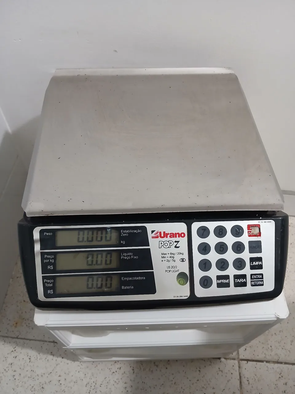 Balança comercial Urano POP Z, ideal para estabelecimentos comerciais que buscam precisão e eficiência. Com capacidade para 6kg/20kg, ela é perfeita para pesar diversos tipos de produtos. Possui visor de fácil leitura e funções que agilizam o dia a dia.