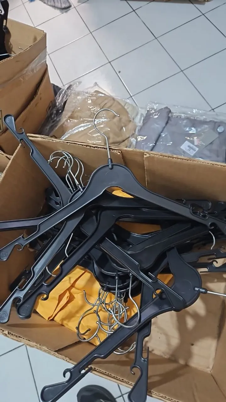 Cabides para roupas, ideais para organizar suas peças com praticidade e elegância. Perfeitos para lojas ou uso doméstico, garantindo que suas roupas fiquem sempre bem cuidadas e expostas.