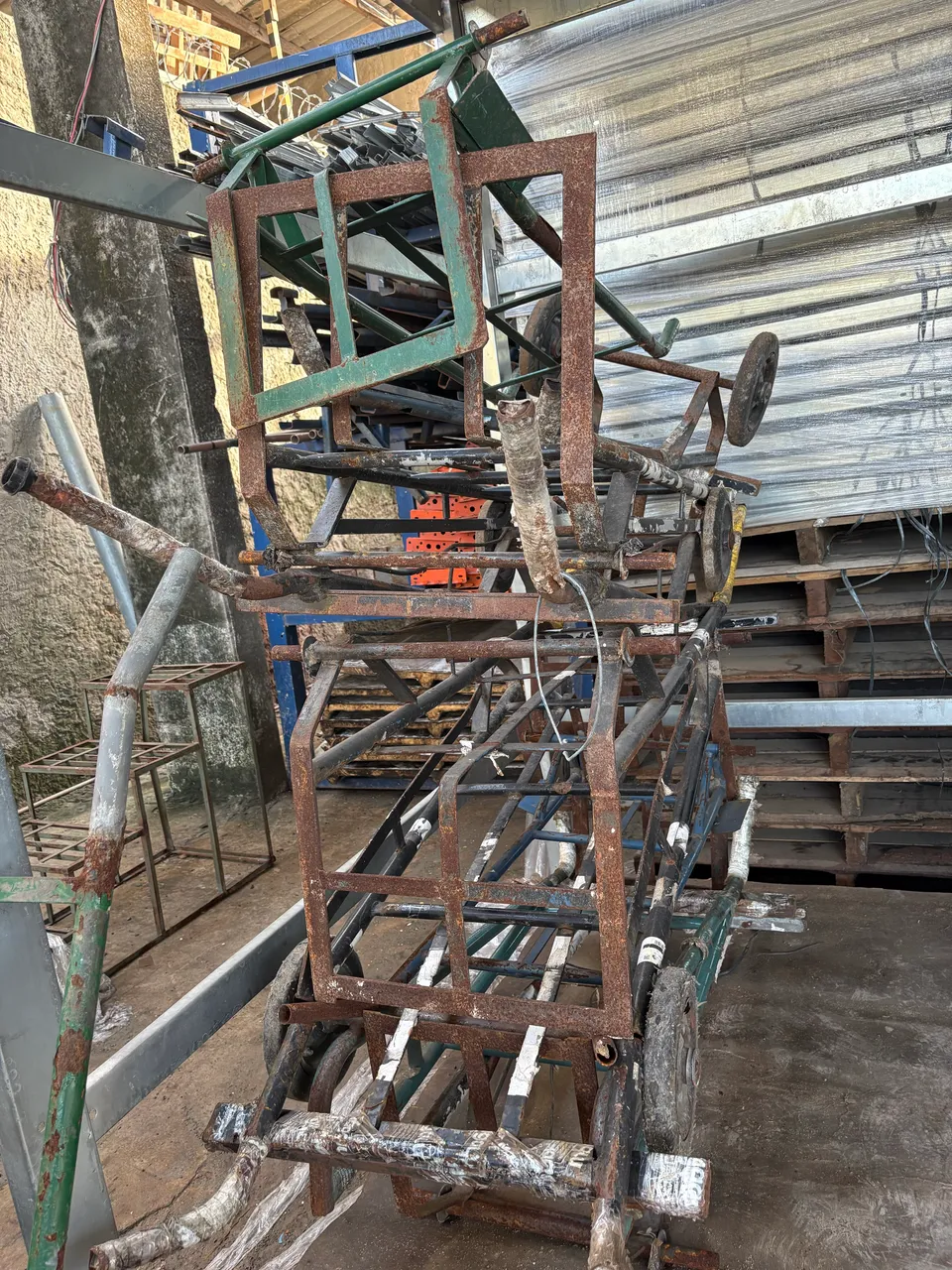 Carrinho manual resistente, ideal para transporte de mercadorias em diversos ambientes comerciais. Facilita o manuseio e otimiza o transporte de cargas.