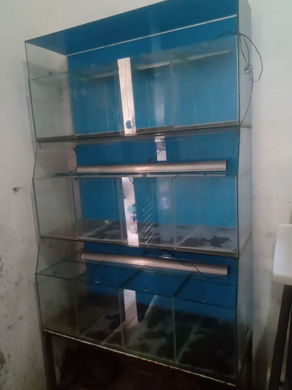 Aquário completo para peixes, com 3 andares, iluminação de leds 3, compressor oxigenador, sistema de vasão do compressor individual,