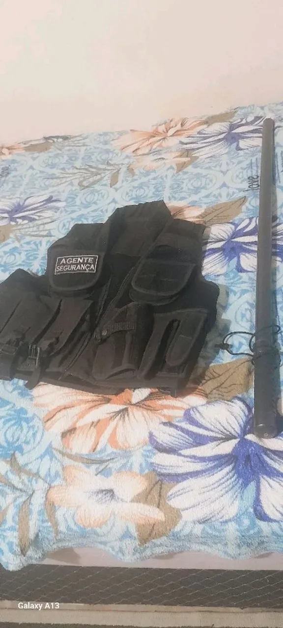 Kit completo para vigilantes, contendo colete de segurança com a identificação de agente de segurança e bastão retrátil. Ideal para garantir sua proteção e segurança no trabalho.