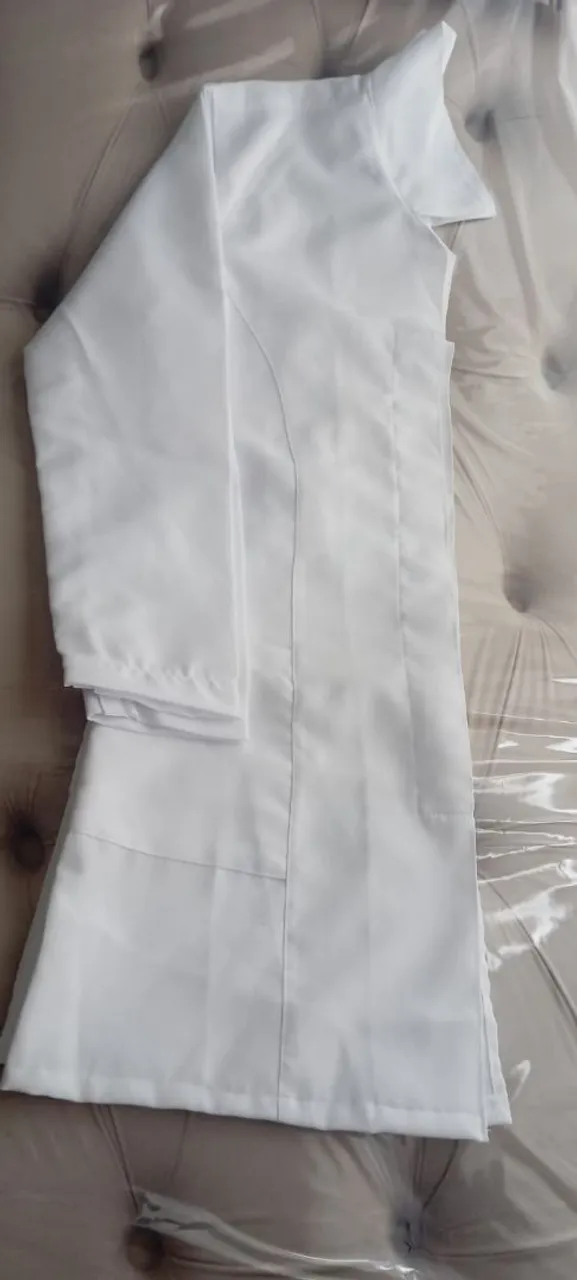 Jaleco branco tamanho M, ideal para profissionais que buscam conforto e proteção. Perfeito para diversas áreas de trabalho.