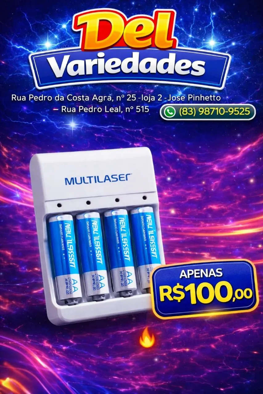 Carregador de pilha Multilaser, ideal para manter seus aparelhos sempre prontos para uso. Recarregue suas pilhas com praticidade e segurança, garantindo energia para seus dispositivos.
