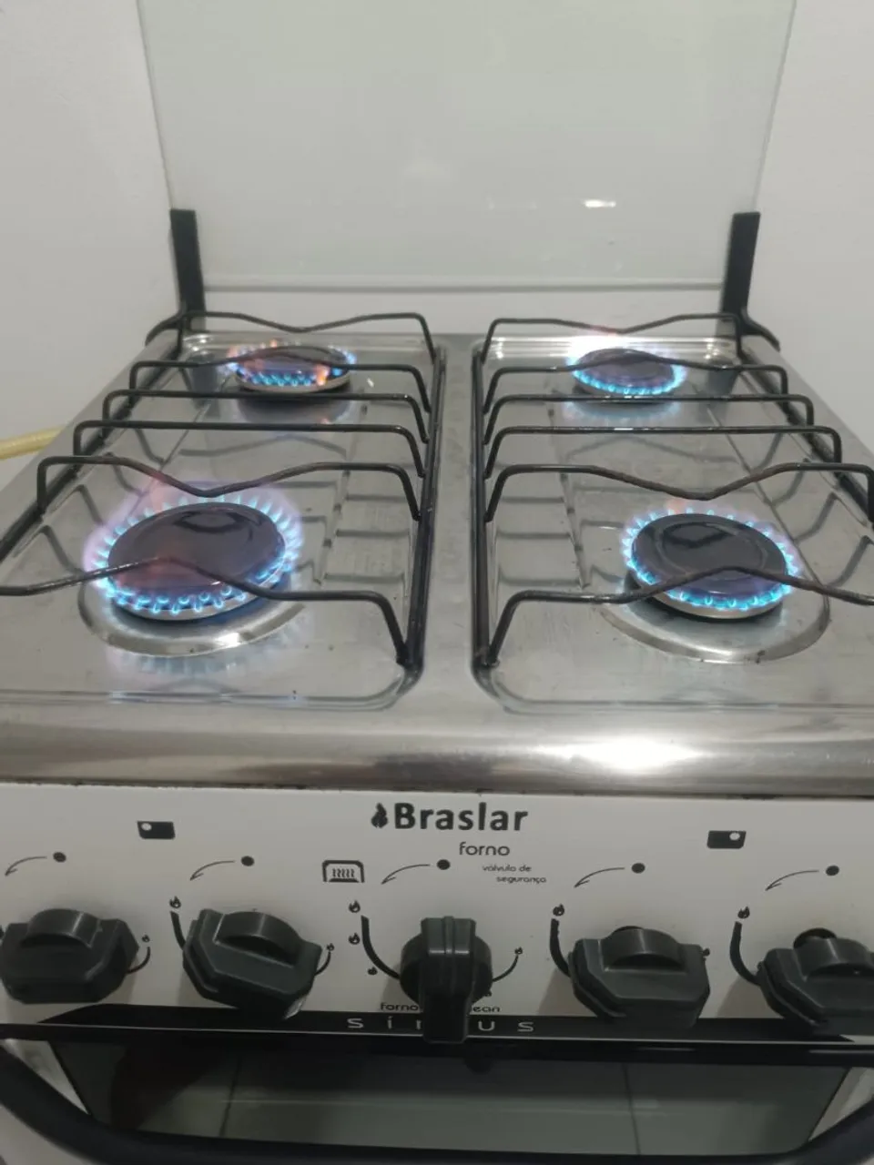 Fogão 4 bocas funcionando normalmente, bocas e forno em ótimo estado. Fogão apenas com marcas de uso, porém muito bem conservado.