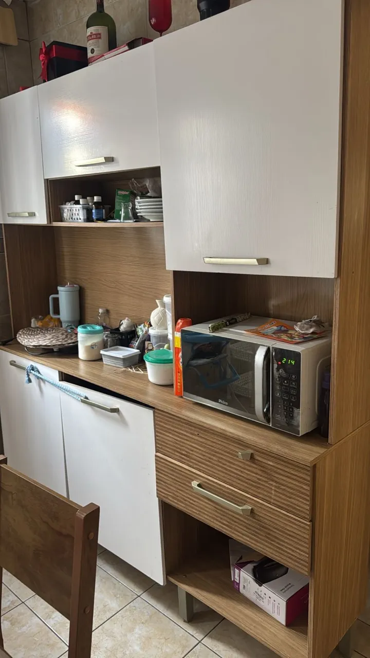 Armário de cozinha usado, estou me mudando e n pretendo levar. Está faltando uma tampa a duas se colocar prego fica ótimo