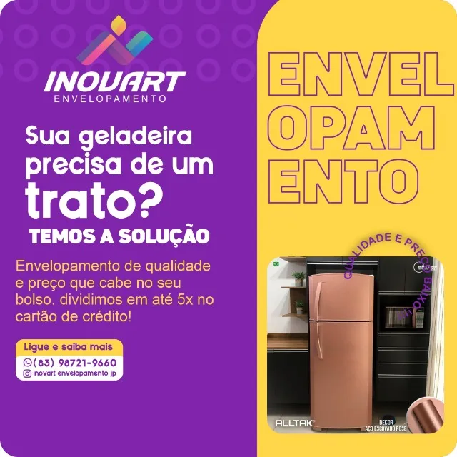 Transforme sua geladeira com envelopamento de qualidade! Deixe sua cozinha mais moderna e com o seu estilo. Dividimos em até 5x no cartão!