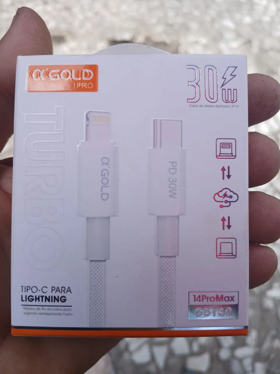 Cabo Turbo Tipo-C para Lightning para iPhone, carregamento rápido e eficiente. Ideal para o seu dia a dia! 30W turbo