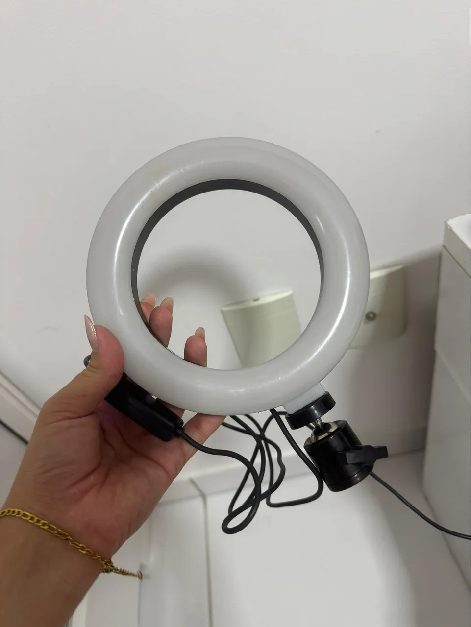Só a ring light sem tripé. Está funcionando perfeitamente Possui 3 cores