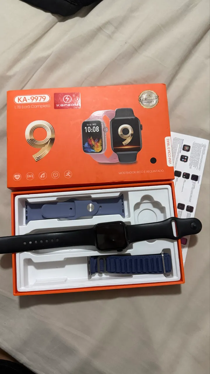 Smartwatch digital com tela de 1.78 polegadas, design moderno e mostrador rico e requintado. Acompanha 3 tiras para você personalizar.