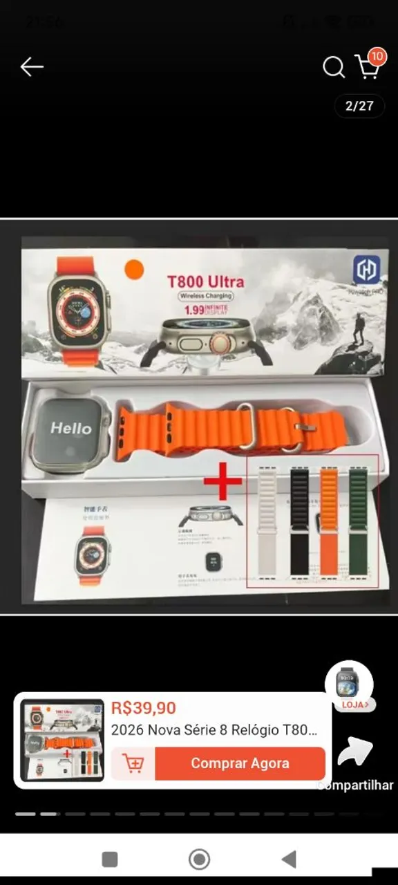 Descubra o futuro no seu pulso com o Relógio Digital T800 Ultra. Com design moderno, tela vibrante e carregamento sem fio, este smartwatch é perfeito para quem busca estilo e tecnologia. Acompanha duas pulseiras para você personalizar e combinar com qualquer look.