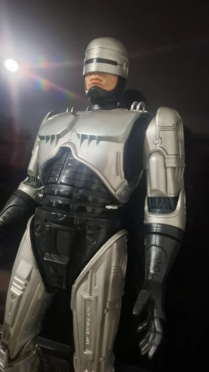 Raro Robocop Neca 1:4 45cm. Robocop em ótimo estado de conservação e funcionamento dos sensores de aproximação e sons do filme. Robocop sem marcas ou arranhões. Réplica fiel do filme. Acompanha arma de Robocop. Sem caixa. Retirar em João Pessoa PB.