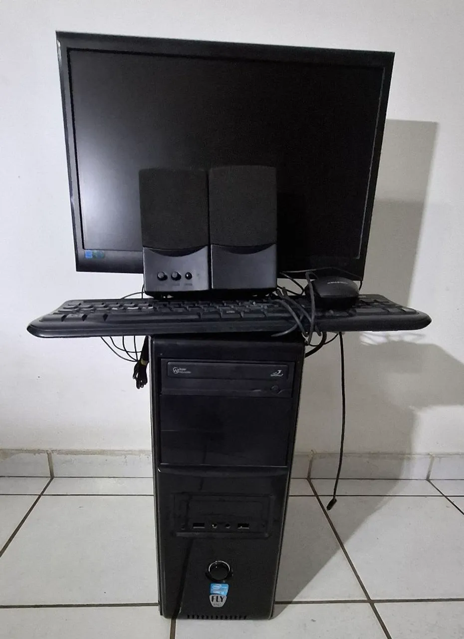 Computador completo pronto para uso! Possui monitor, teclado, mouse, caixa de som e gabinete. Ideal para tarefas básicas e trabalho.