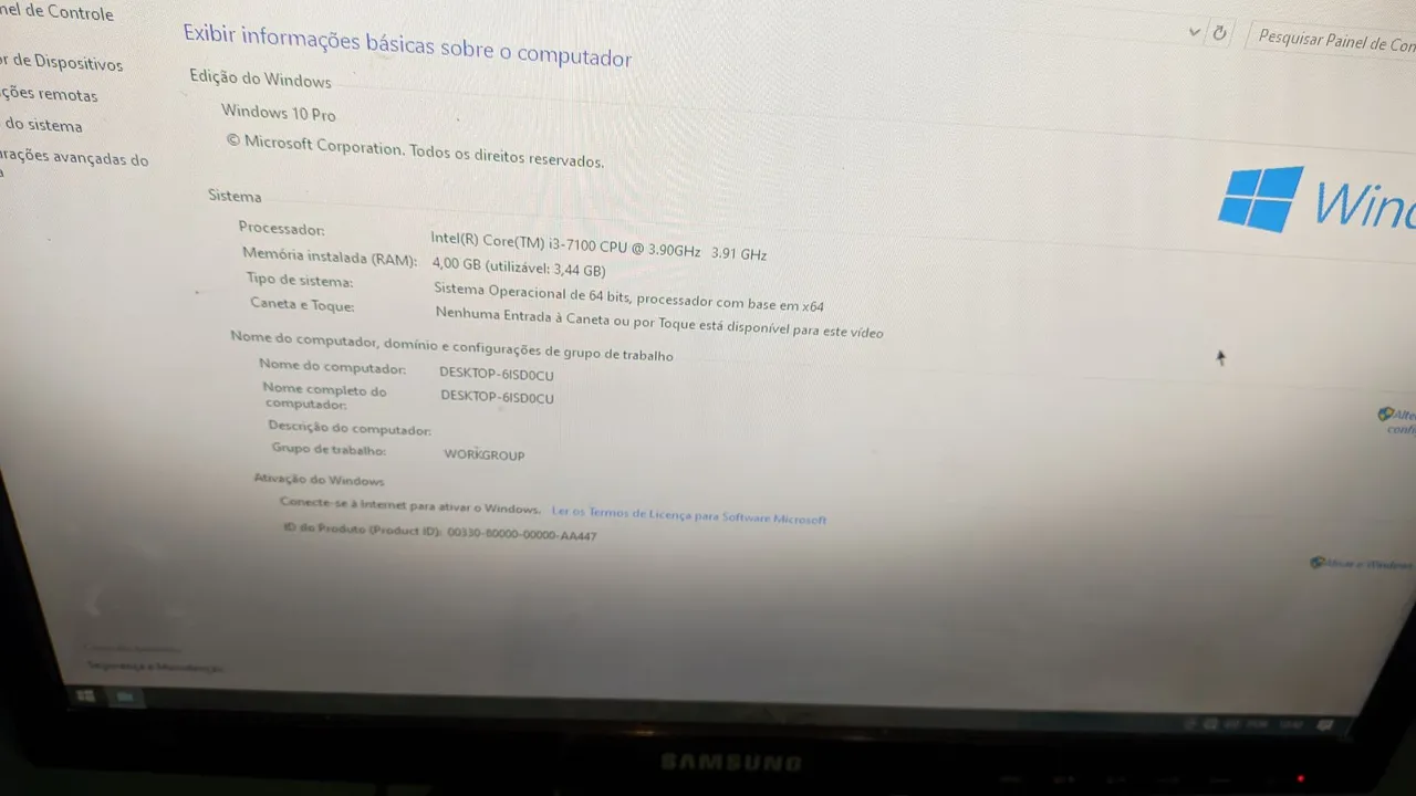Desktop com processador Intel Core i3, 4GB de RAM e sistema operacional Windows 10 Pro. Ideal para tarefas do dia a dia e trabalho.