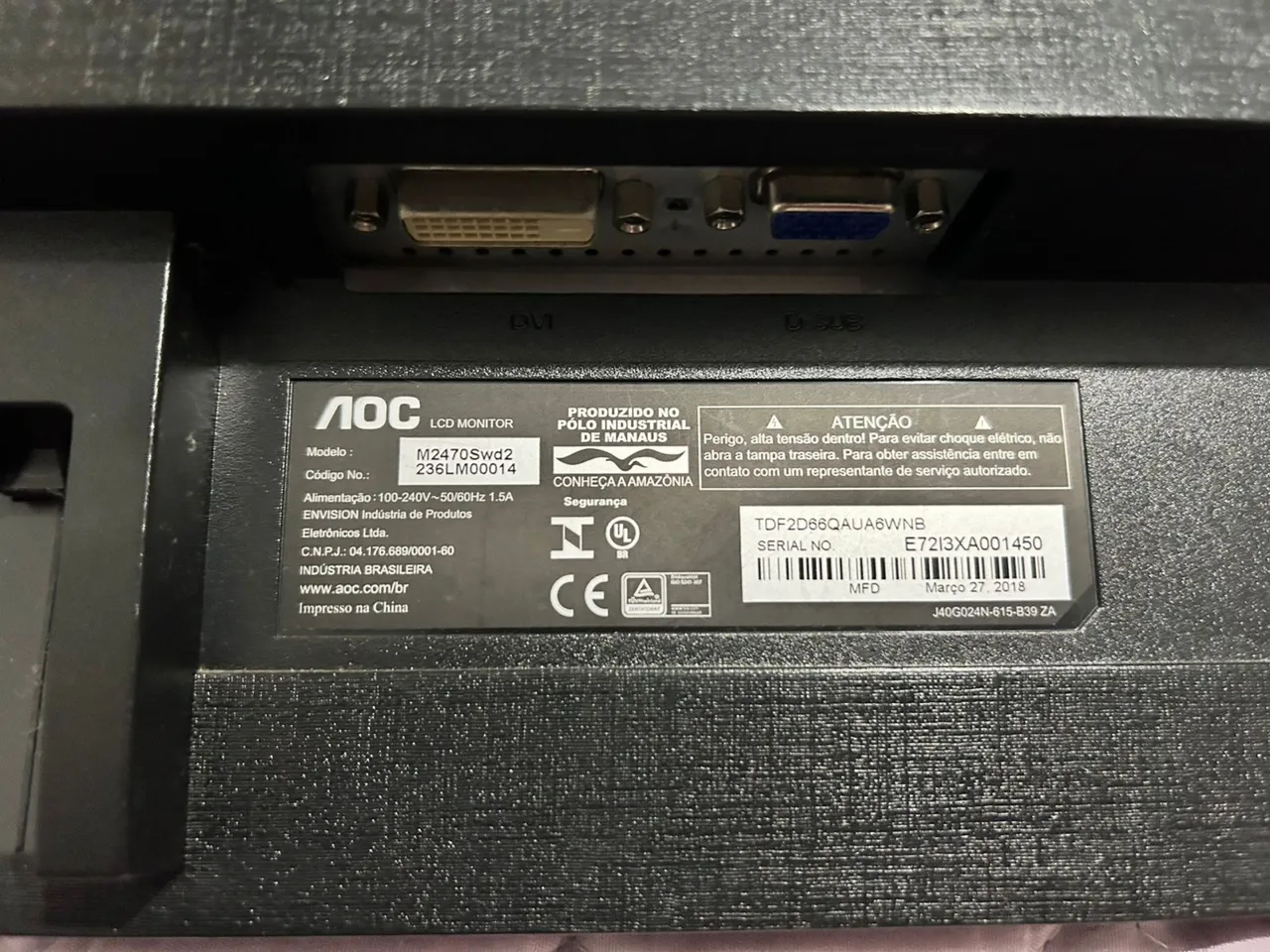 Desfrute de imagens nítidas e cores vibrantes com o Monitor AOC de 23,6 polegadas. Ideal para trabalho e lazer, este monitor oferece uma experiência visual imersiva e confortável.