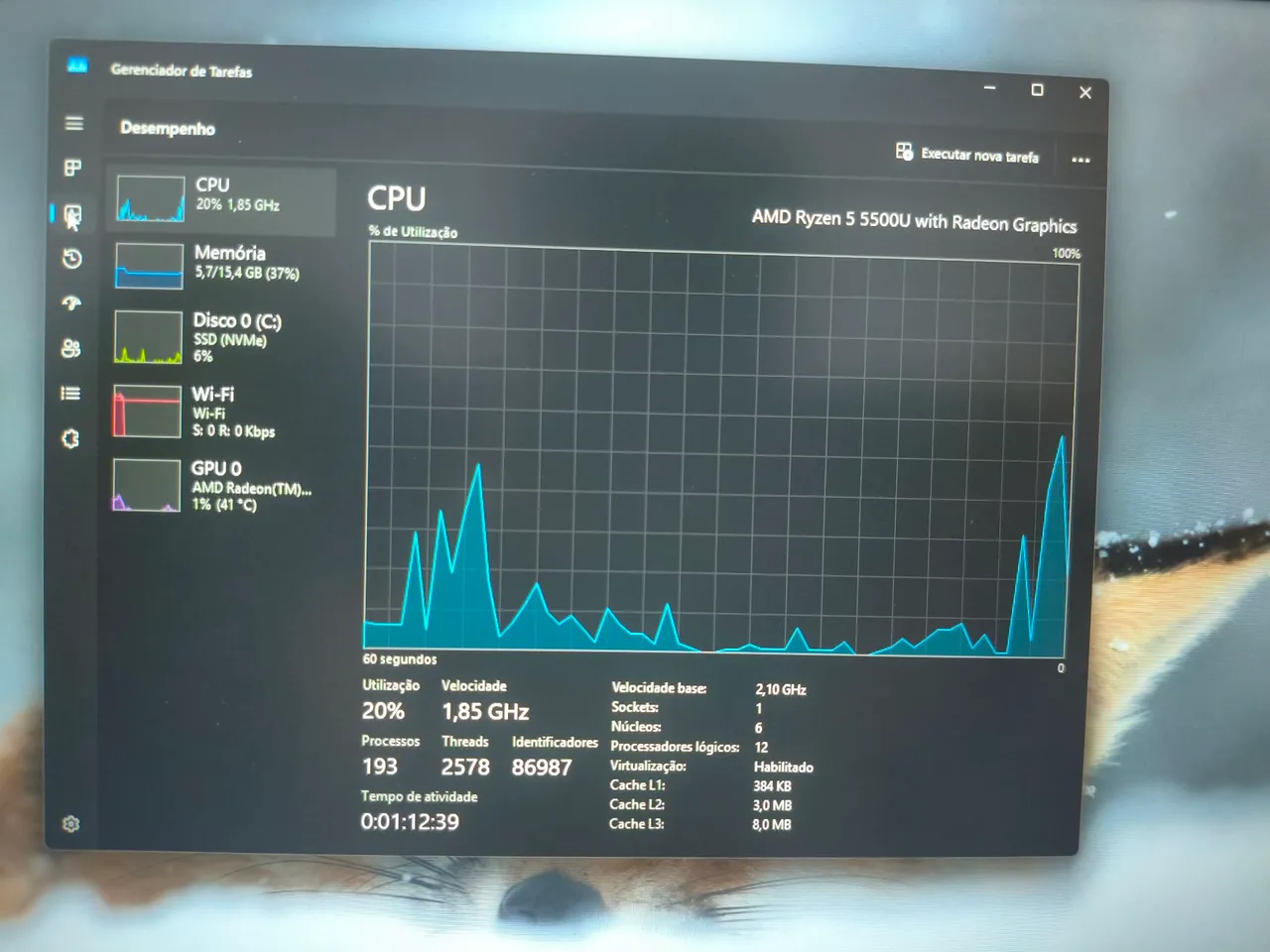 Notebook com processador AMD Ryzen 5 5500U, ideal para suas tarefas diárias e atividades multimídia. Desfrute de desempenho e eficiência em um design compacto e moderno.
