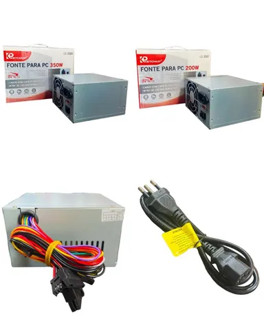 200W - R$89,99 350W - R$149,99 MTBF de 100.000 horas 25°C Proteção contra curto circuito OVP/OCP/SCP Chaveamento manual 110/220V Ventilador de 120mm ultra silencioso Cabos com capa de proteção Normas técnicas IEC60950(Segurança Elétrica), IEC61000 (Segurança Eletro Magnética)