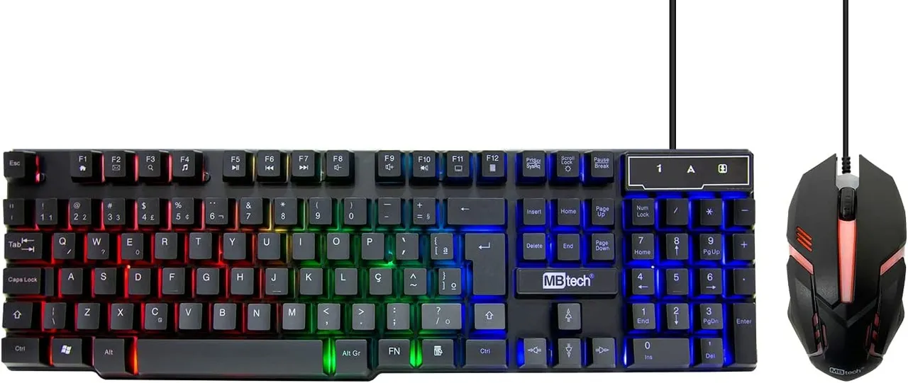 Kit teclado e mouse gamer MBtech com iluminação LED vibrante, design ergonômico e desempenho superior para suas jogatinas. Desfrute de uma experiência imersiva e cheia de estilo!