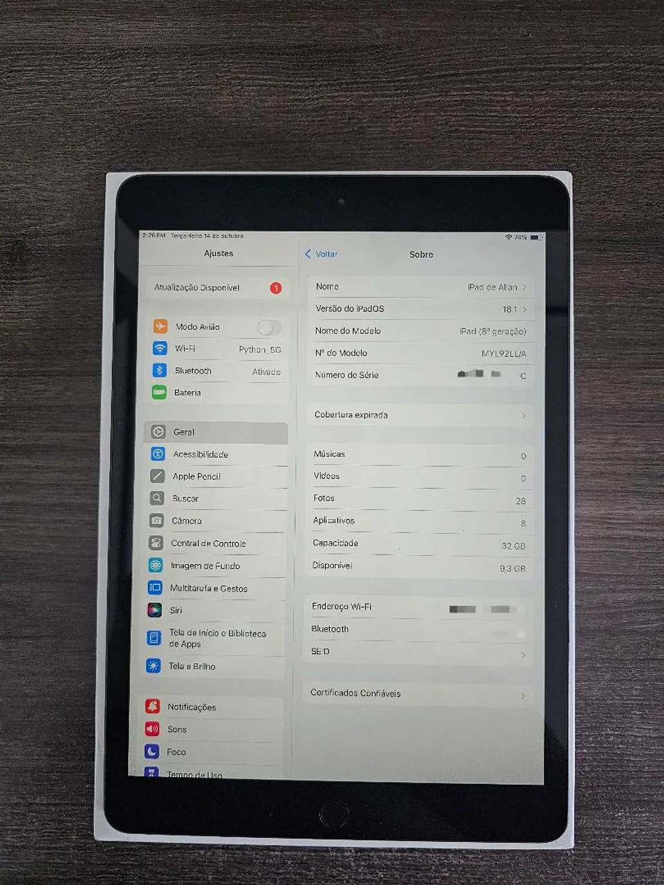 iPad de 8ª geração, tela Retina de 10,2 polegadas, chip A12 Bionic para desempenho rápido e eficiente. Perfeito para estudos, trabalho e entretenimento.