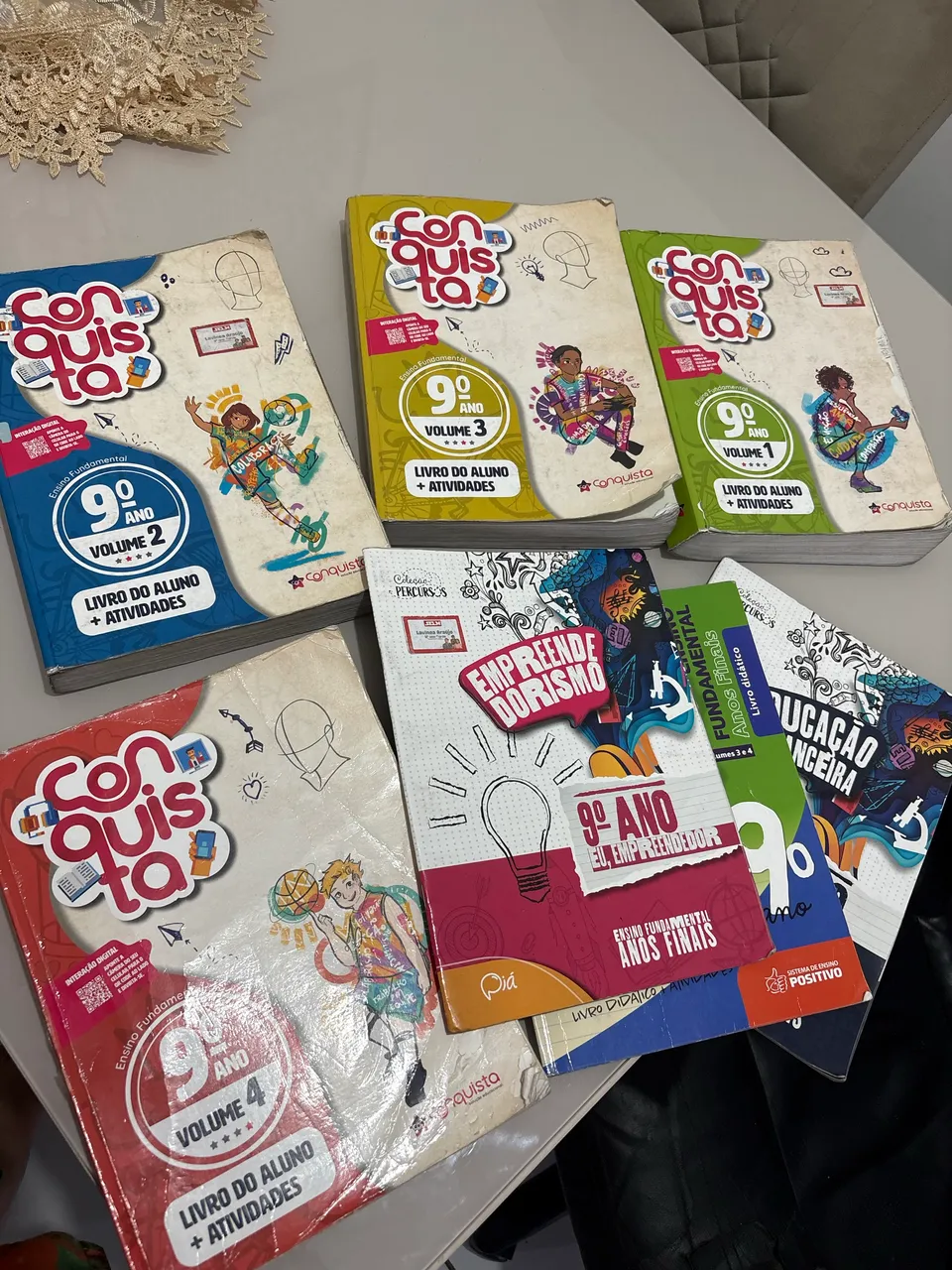 Livros do 9º ano da coleção Conquista, ideais para o ensino fundamental.