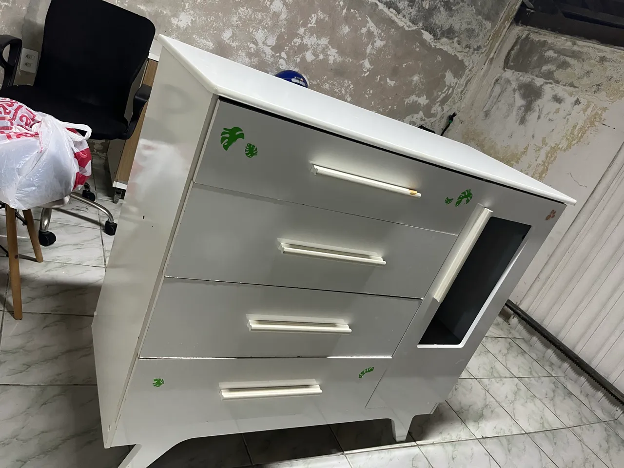 Linda cômoda branca, perfeita para organizar seus pertences com estilo e praticidade. Design moderno e funcional, ideal para diversos ambientes.