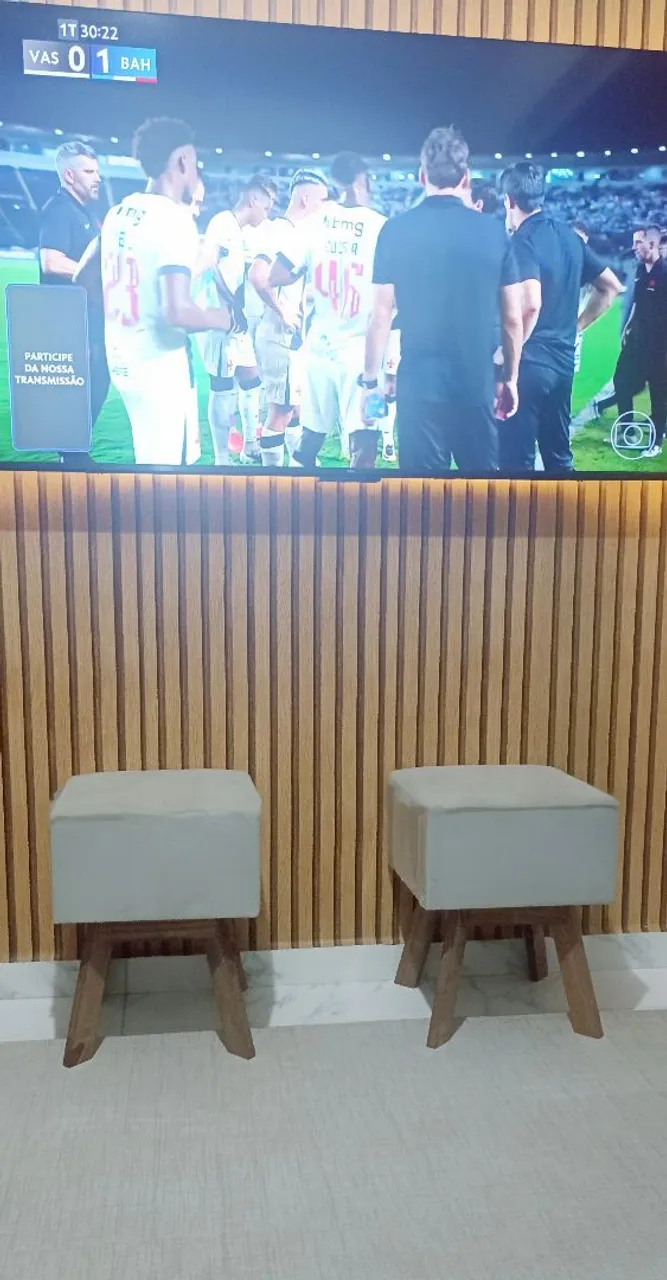 Vendo Kit de 2 Puffs retrô cor bege, tecido aveludado e pés em madeira, suportam até 100 kg sao de ótima qualidade. ZAP