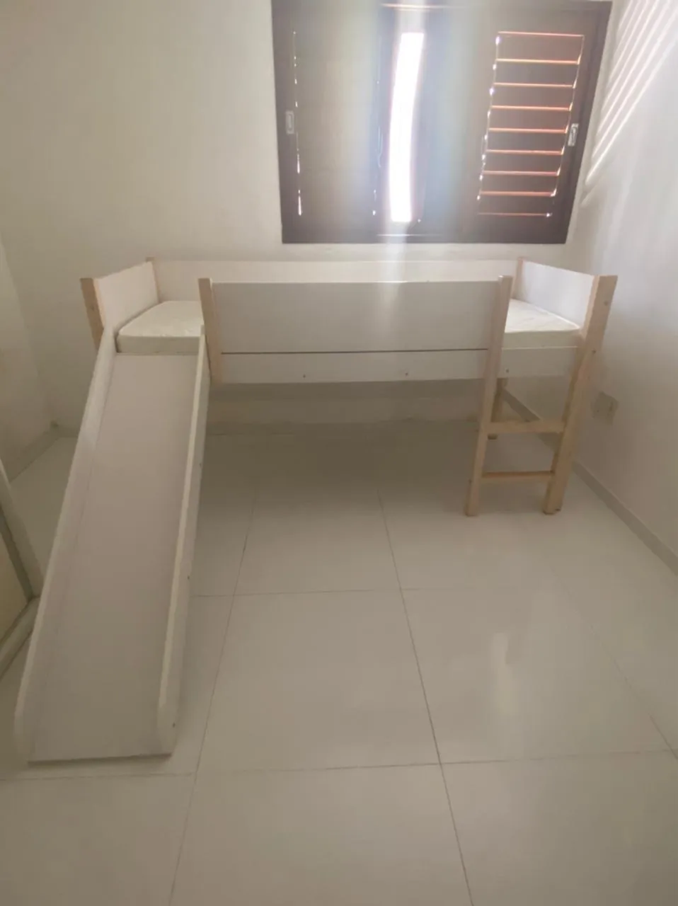 Cama alta infantil/juvenil com design moderno e funcional. Perfeita para otimizar o espaço do quarto e proporcionar diversão para as crianças. Possui escada e escorregador integrados, poico usada, bem conservada.