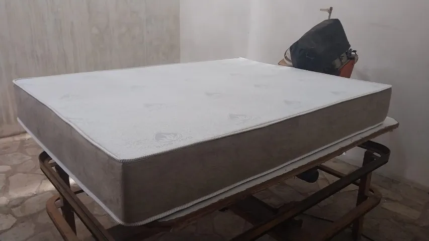 Estrutura do colchão em molas ensacadas individualmente com espuma selada D28. Lateral do colchão em sueder e o tampo com estampa da linha alta.
