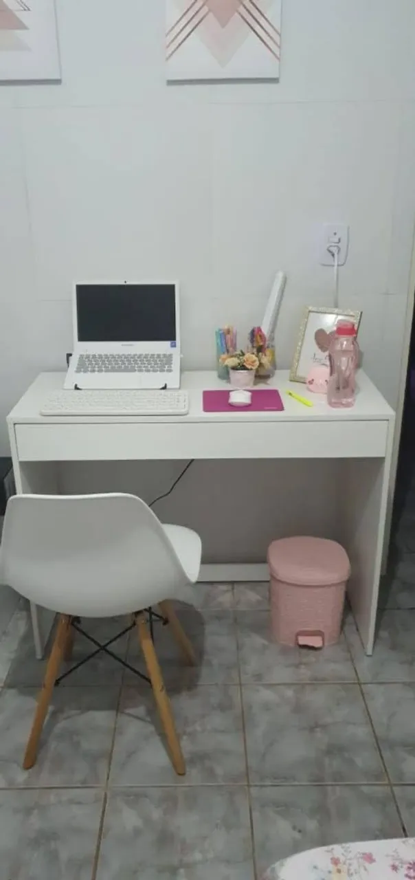 Linda escrivaninha branca, ideal para estudos ou trabalho. Design moderno e elegante que combina com qualquer ambiente. Aproveite!
