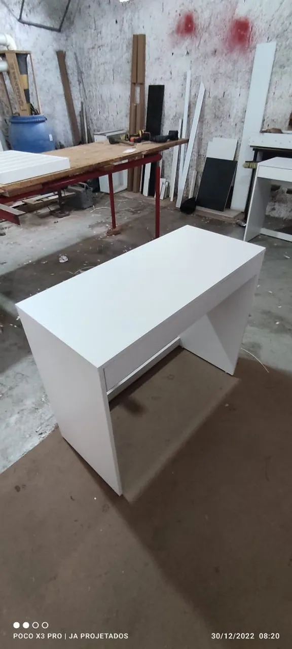 Apresentamos uma escrivaninha simples, ideal para otimizar seu espaço de trabalho. Com design moderno e clean, ela se adapta a diversos ambientes. Possui um gavetão espaçoso para organizar seus pertences, mantendo tudo ao alcance e com visual impecável.